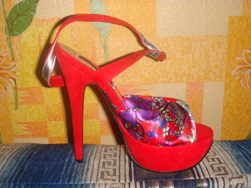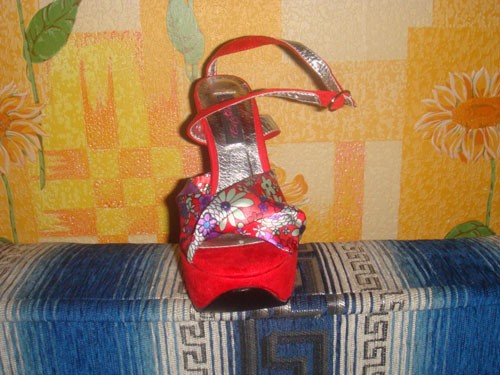 Босоножки красные, искусственная замша и атлас. Размер 35, Каблук 14см, платформа 3,5 см, стелька 23 см. Новые.