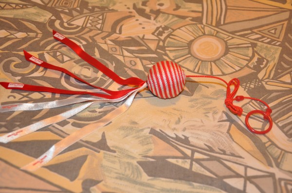 мячик - драпка + шелковые красно - белые хвостики на резинке c кольцом для одевания на палец или ручку шкафа фирмы royal kanin. новая в упаковке. живу на Троещине. посмотреть можно в пичке.