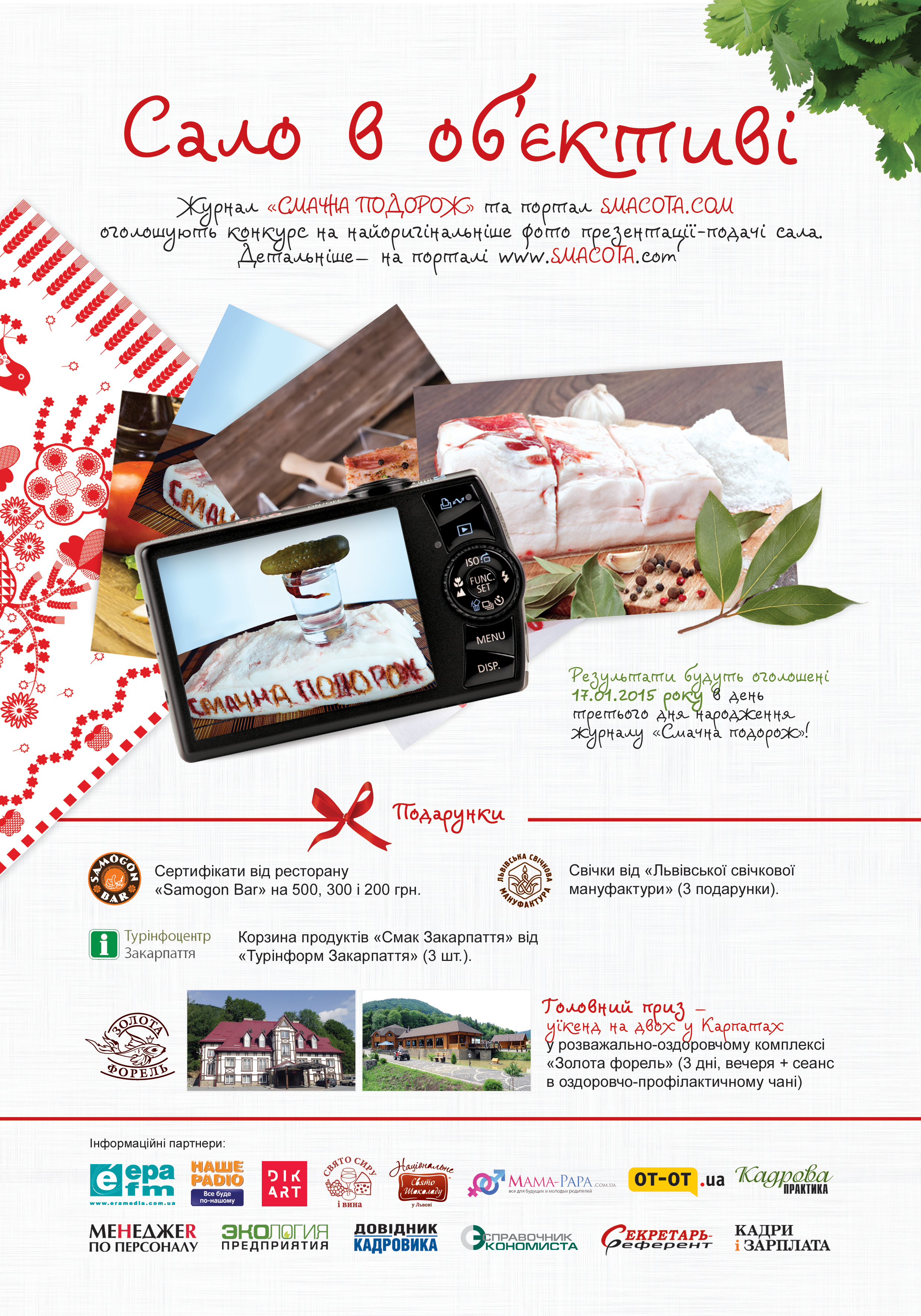 Результати будуть оголошені 17.01.2015 року в день третього дня народження журналу «Смачна подорож»! |