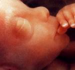в предыдущие недели. Наступило время поговорить о своём положении с руководством на работе. Обратите внимание на свой образ жизни, особенно на питание. Это очень важно для вас и будущего малыша. Сердце бьётся с частотой 110 - 160 ударов в минуту, грудь поднимается и опускается совсем как при дыхании. Отчётливо видны черты лица, пальчики на руках совсем и ногах полностью сформировпны, начинают расти тоненькие ногти. Ребёнок сосёт большой палец руки, заглатывает плодную жидкость, начинающую выходить в виде мочи. Амниотическая жидкость полностью обновляется каждые 24 часа. Длина плода 6,5 см, вес 20 г.