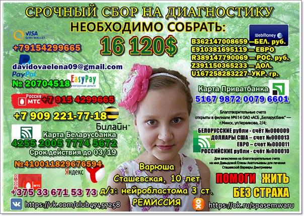 Варюше поставили диагноз в ноябре 2010,в онкоцентре Боровляны.
