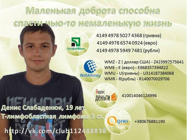 Слабаденюк Денис, 19 лет. Днепропетровская обл., г.Кривой Рог, Украина Диагноз: Опухоль средостения, Лимфома 3ст.